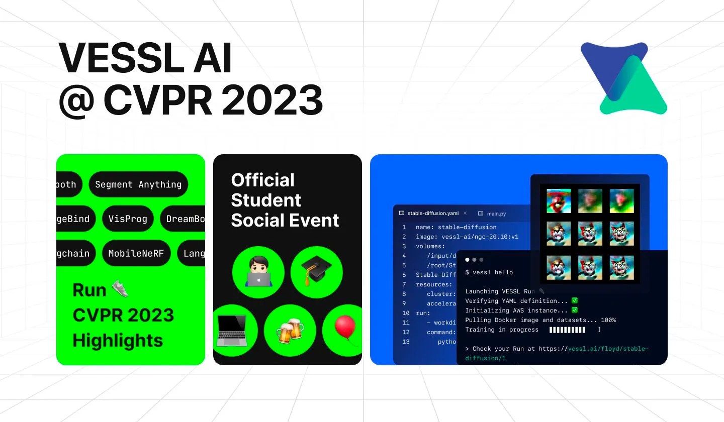 Next week, VESSL AI will be in Vancouver for CVPR 2023! We are excited to host the official student social event, share our latest product updates, and showcase demos! Here are a few things to know about VESSL AI at the conference.