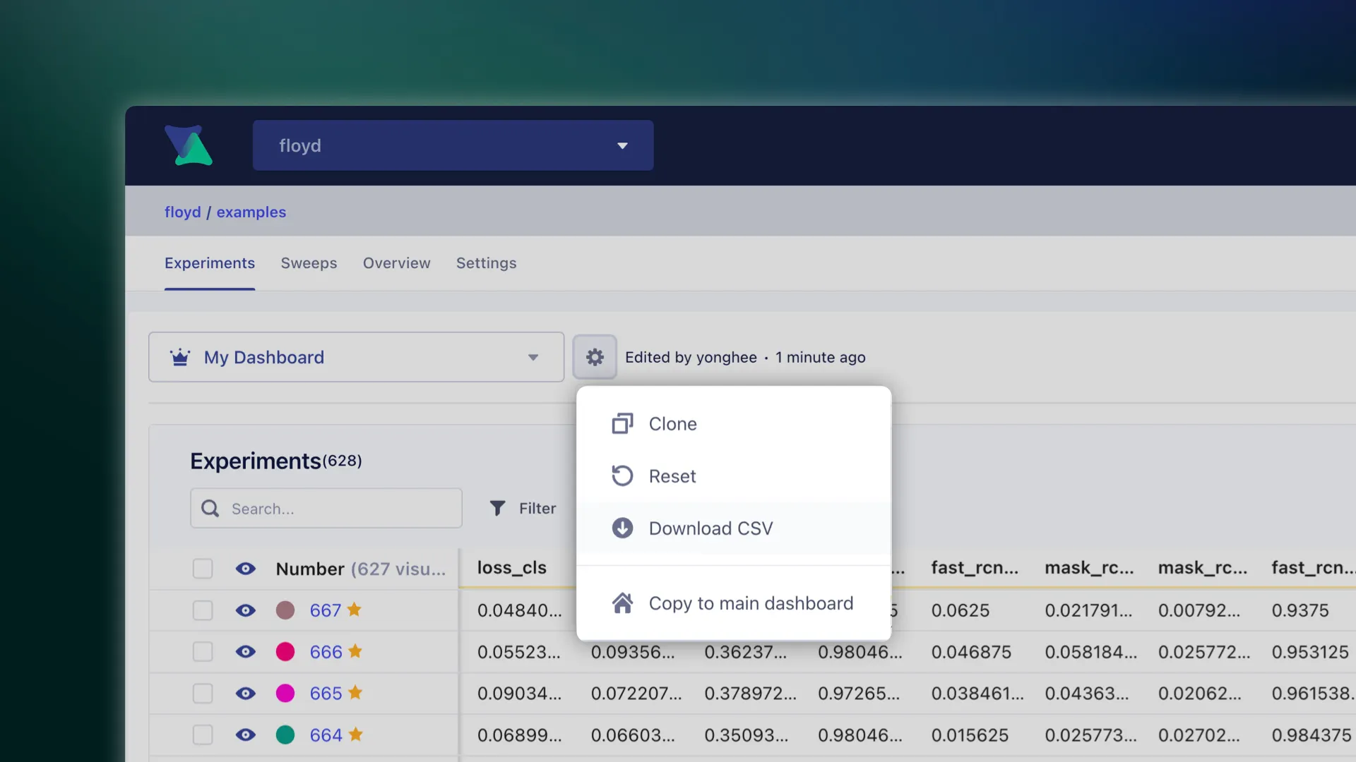 You can now download CSV files of your experiment dashboards. Apply filters and sorts, save the view as a dashboard, and download it as CSV.