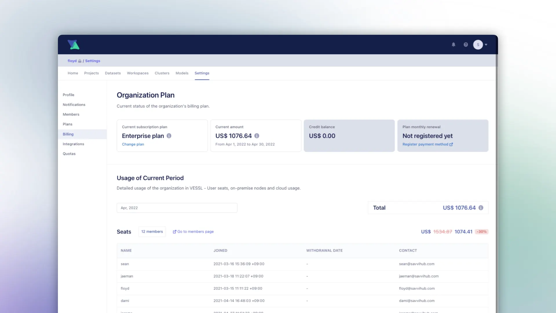 We are constantly improving our product with new features and bug fixes. Join our community Slack and follow us on Twitter or LinkedIn to stay updated. For questions and feedback, feel free to reach out at support@vessl.ai.