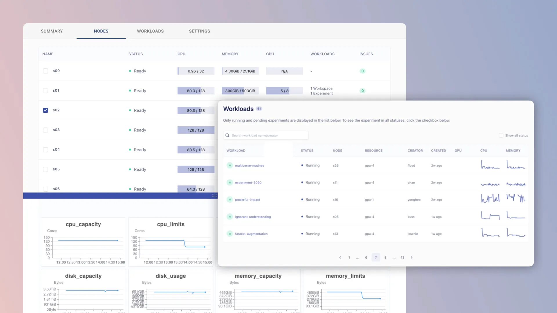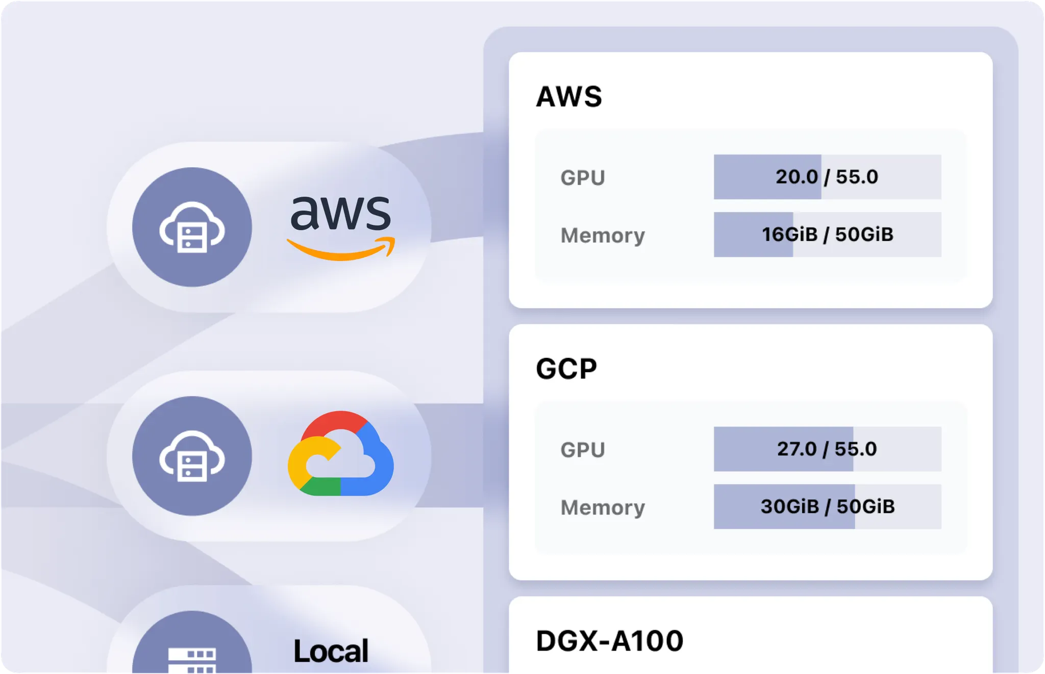 Optimize your on-premise GPU servers and prevent overruns by setting quota limits to GPU hours and disk size, the number of workloads and occupiable GPUs, and more.