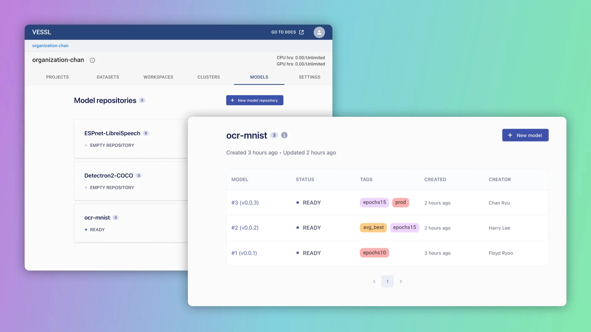 More commands for vessl experiment — New commands like vessl experiment delete have been added to our CLI. Refer to our docs for more details.